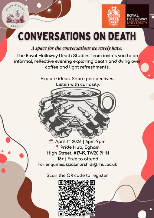 The Death Studies team at Royal Holloway, University of London, invites members of the community for an informal, reflective conversation about death and dying over coffee and light refreshments.
